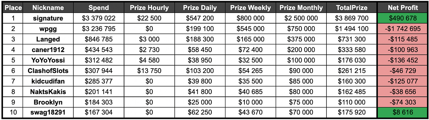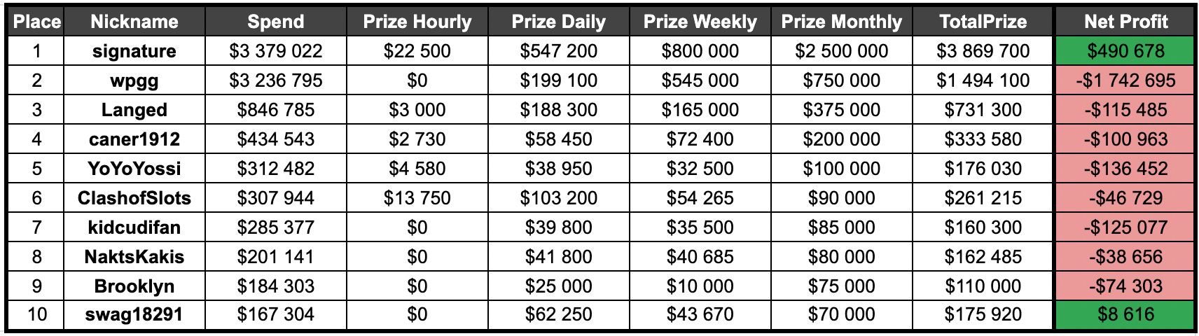 Out of all tournament participants, only two finished in profit: first and tenth place. Everyone else lost. In total, the tournament earned the organizers $3.4M.