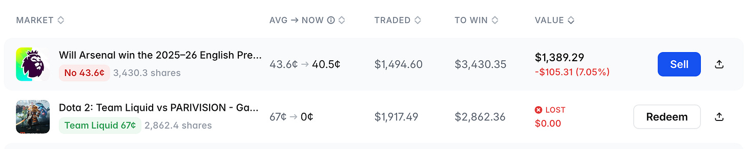 I have two accounts on prediction markets. The first one is purely degenerate. I occasionally throw money at sports, esports, and politics just for fun. There’s probably no real edge there, which is why I do it rarely.
