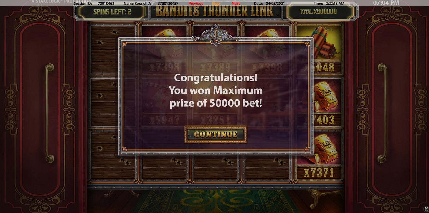 Everyone played Bandits Thunder Link for hours, taking short breaks to avoid drawing attention. Not sure that helped — one of our accounts hit the 50,000x max win and took first place.